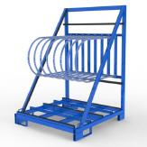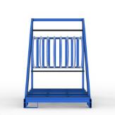 Transportgestell für Türenelemente, mit flexibel einstellbaren Bügelfächern, Stapler-und hubwagenfähig.