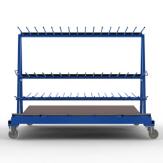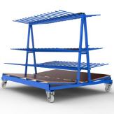 Rahmenzuschnittwagen mit fest vorgegebenen Kommissionsbreiten für max.15 Einstellkommissionen bzw. für Rahmenbreiten von 60 bis max. 105 mm.