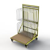 Rahmenwagen zur Unterbringung und Kommissionierung von bis zu 10 Fensterelementen oder Türblättern in unterschiedlichen Größen.