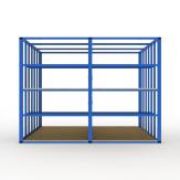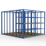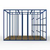 Elementelager für Fenter, Türen, Platten, Tafeln und Zuschnitten bis 2150 X 3000 mm, zwei Einstellfächer mit einer Unterteilung in der Horizontale. Die Einstellfächer Frontseitig mit Einzelrollen (30X400 mm) im Grundrahmen ausgerüstet. Das Plattenlager besteht aus 2 Einzelmodulen, welche miteinander verschraubt sind.