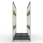 FGL Transportbox für Fassadenelemente bestehend aus Schwerlastpalette mit zwei abnehmbaren Seitenrahmen und 2 Kopfbügeln. Staplerfähig mit durchgehenden Kippsicherungen und 8 Auflagen mit Vollgummi, sowie Anlagen aus Weichholzplatten an den steckbaren Seitenrahmen