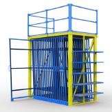 Lagerbühne mit abnehmbarem Schutzgeländer, sowie einstig mit verstellbaren Regalfachböden.