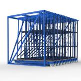 FGL Schubfachmodul für die platzsparende Lagerung und Kommissionierung von Glas- und Plattenformaten, ausgestattet mit insgesamt 5 Schubfächern und 530 mm Auflagentiefe je Einstellfach, sowie nachfolgenden Eigenschaften.