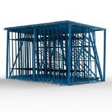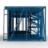 FGL Kombimodul für die platzsparende Lagerung und Kommissionierung von breiten Rahmenelementen, bestehend aus 2 Einzelrahmen als Kurzrahmen, ausgestattet mit insgesamt 15 Schubfächern