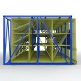 FGL Schubfachmodul-Kombination für Glaspakete und Kisten (3,21 x 2,55/2,62 m) bestehend aus 5 Einzelrahmen miteinander verbunden zu einer Kombination mit insgesamt 40 Cap- und Kistenplätzen.