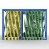 FGL-Schubfachlager-Kombination für die platzsparende Lagerung und Kommissionierung von Glasgrößen in den Abmessungen bis 3.210 x 2.250 mm, mit 19 Einstellplätzen als Kombirahmen und nachfolgenden Daten.