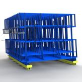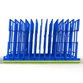 FGL Querlagersystem "Ausführung als Erweiterung / Verlängerung" mit 14 Einstellplätzen für Glasgrößen bis 3.210 x 2.250 /2.550 mm bis 2.500 kg Fachbelastung.