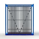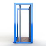 Kommissions- und Fächerregal für die kommissionierte Lagerung von Glanzglastüren, Glastrennwänden und Zuschnitten in den Abmessungen bis max. 1.050 mm x 2.150 mm aus verwindungsfrei verschweißter Stahlrohrkonstruktion und nachfolgenden Eigenschaften.