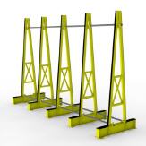 FGL Floatglas-Lagergestell zur beidseitigen Beladung mit je 5 Anlagebinder und einer Anlagenneigung von 5°, vorgesehen zur Verschraubung auf vorhandenem Untergrund.