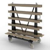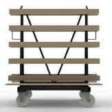 Glastransport- und Kommissionswagen für beidseitige Beladung, ausgestattet mit Vollgummi Lenk- und Bockrollen in verstärkter Ausführung.
