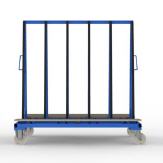 Glastransport- und Kommissionswagen für beidseitige Beladung, ausgestattet mit Vollgummi Lenk- und Bockrollen in verstärkter Ausführung.