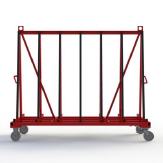 Glastransport- und Kommissionswagen in kranbarer Ausführung, mit beidseitig gummierten An- und Auflagen, sowie Vollgummi Lenk- und Bockrollen.