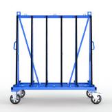 Glastransport- und Kommissionswagen für beidseitige Beladung, ausgestattet mit Vollgummi Lenk- und Bockrollen in verstärkter Ausführung.