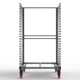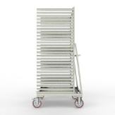 FGL- Fächer/Kommissionswagen für einseitige Beladung in lackierter Ausführung mit je 4 Lenkrollen und einer Aufnahmekapazität von max. 750 kg.