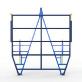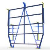 FGL Ladegabel für Glasgrößen bis 3.210 x 2.550 mit insgesamt 4 Halteklauen zum sicheren Halt der Bandmaßtafeln, 2 bzw. 4- teiligem Schutzgitter, verstellbaren unteren Aufnahmefüßen, beidseitigen Trittsprossen und 2-Punkt-Kranaufnahme.