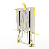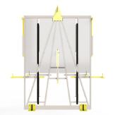 FGL Ladegabel für Glasgrößen bis 3.300 x 2.750 mit insgesamt 7 Halteklauen zum sicheren Halt der Bandmaßtafeln, 2- teiligem Schutzgitter, verstellbaren unteren Aufnahmefüßen, beidseitigen Trittsprossen und