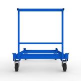 Unterwagen für Glas- und Fenstertransportgestelle, für den internen Gestelltransport,mit abnehmbaren Schub- und Zuggriff.