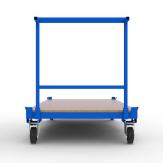Unterwagen für Glas- und Fenstertransportgestelle, für den internen Gestelltransport,mit abnehmbaren Schub- und Zuggriff und durchgehendem Holzboden aus 22 mm Siebdruckplatte