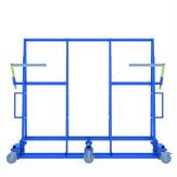 Für den internen Transport von Glaskisten bzw. Caps, ausgerüstet mit einer Mittelachse (Polyamid-Schwerlasträder), 4 stirnseitig angebrachten Schwerlast- Lenkrollen (2x Stop) aus Polyamid und mit verstellbaren selbstarretierenden Seitenhaltern. Die Anlagen sind vorgesetzt, sodass die Cups- oder Kistenhölzer wegtauchen und das Glas nicht hinterfüttert werden muss.