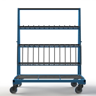 Rahmenzuschnittwagen mit 12 Einstellplätzen, 4° Grad geneigt.