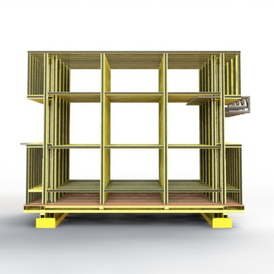 FGL Querlagersystem mit 10 Einstellplätzen für Glasgrößen bis 3.210 x 2.250 /2.550 mm bis 2.200 kg Fachbelastung.