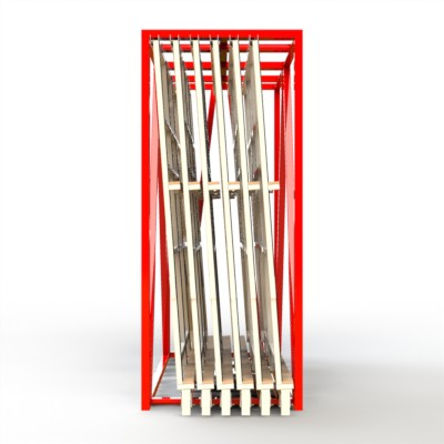 Für die platzsparende Lagerung und Glasvereinzelung von Glasgrößen in den Abmessungen bis 1.900 x 1.250mm, bestehend aus 1 Einzelrahmen mit 6 Einstellmöglichkeiten und einer zusätzlich integrierten Etagenauflage.
