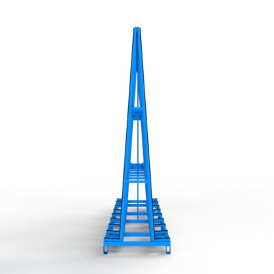 Glastransportgestell für beidseitige Beladung, kranbar mit Unterlochraster für *optionale Gurtspannlatten, Kippsicherungen und Staplerfüßen.
