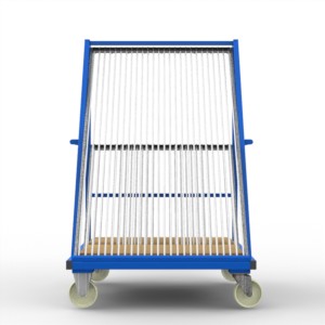 Weiterer Vorteil der FGL- Scheibensortierwagen, im Vergleich zu einigen Wettbewerbsprodukten, sind die mit Kunststoffschlauch überzogenen Stangen („2 oder 3 Stück je Fach“), welche aufgrund Ihrer „Steifigkeit“ ein oberes Zusammenstoßen der Einzelblätter vermeiden.