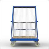 Weiterhin sind die Gläser bei den FGL- Scheibensortierwagen durch die Anordnung von Fachstangen und Röllchenachsen zueinander beim Einführen in die einzelnen Fächer vor Zusammenstoßen geschützt, wodurch Kratzer vermieden werden.
