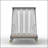 Weiterhin sind die Gläser bei den FGL- Scheibensortierwagen durch die Anordnung von Fachstangen und Röllchenachsen zueinander beim Einführen in die einzelnen Fächer vor Zusammenstoßen geschützt, wodurch Kratzer vermieden werden.