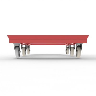 mit 4 Lenkrollen, 2x Stopvorrichtung und 2 Bockrollen für die Aufnahme von Glastransportgestellen in den Maßen 2.000 x 800 bis 2.240 x 1.200 mm.