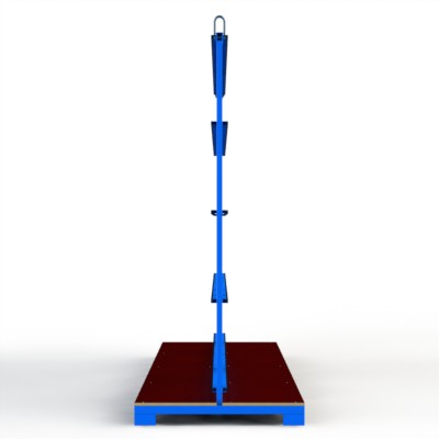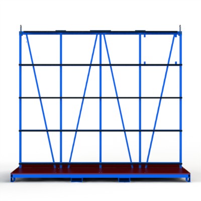 Transportgestell, ausgestattet mit 4 Anschlagpunkten zum Kranen, vorbereitet für die Aufnahme von Steckrollensätzen und steck- / schraubbarem Seitenrahmen, zur 90° Drehung im beladenen Zustand auf die Stirnseite mit