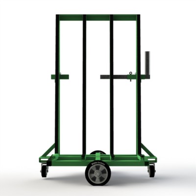 FGL Roll- und Montagewagen für den Scheibentransport auf Baustellen, platzsparend zerlegbar, in einseitiger Ausführung mit gummierten An- und Auflagen.