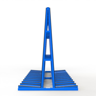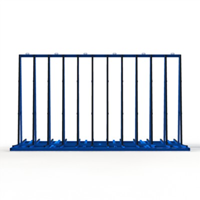 Fenster- und Elementetransportgestell mit erweiterter Auflagebreite zum Einsatz als Anhängergestell mit gummierten Auflagen und gummierten Anlagen.