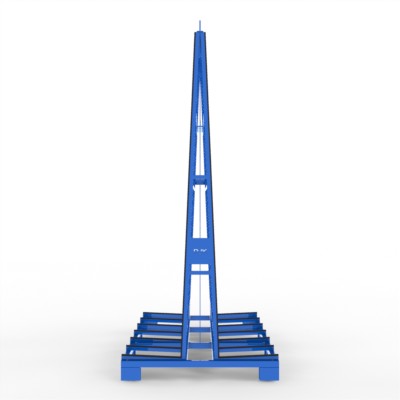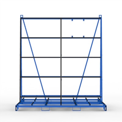 Fenster- und Elementetransportgestell zur beidseitigen Beladung, stapler- und hubwagenfähig, kranbar.
