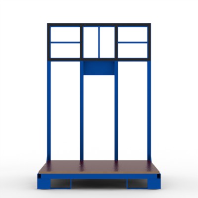 Transportgestell für Türenelemente mit gummierten An- und Auflagen, Stapler-und hubwagenfähig.