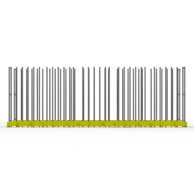 Kombination FGL Kistenigel bestehend aus zwei parallel verlaufender Kistenschienen mit variablen Einsteckmöglichkeiten für Glaskisten und Caps bis 2.450 mm Glashöhe.