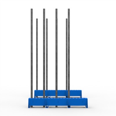 Erweiterung FGL Kistenigel bestehend aus zwei parallel verlaufender Kistenschienen mit variablen Einsteckmöglichkeiten für Glaskisten und Caps bis 2.450 mm Glashöhe, erweiterbar mit zusätzlichen Elementen.