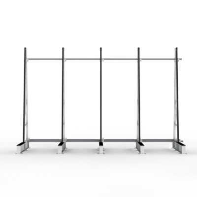FGL Floatglas-Lagergestell zur einsseitigen Beladung mit je 6 Anlagebinder und einer Anlagenneigung von 5°, vorgesehen zur Verschraubung auf vorhandenem Untergrund.