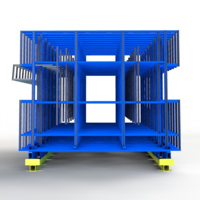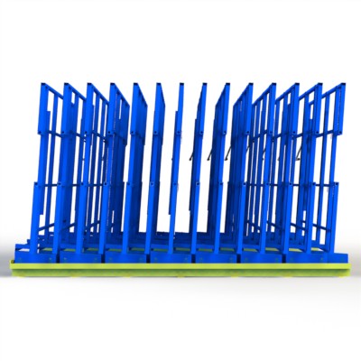 FGL Querlagersystem "Ausführung als Erweiterung / Verlängerung" mit 14 Einstellplätzen für Glasgrößen bis 3.210 x 2.250 /2.550 mm bis 2.500 kg Fachbelastung.