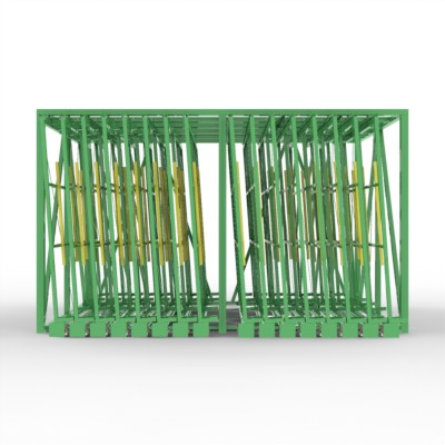 FGL Schubfachlager-Kombination für die platzsparende Lagerung und Kommissionierung von Glasgrößen in den Abmessungen bis 3.210 x 2.550 mm, mit 8 bzw. 16 Einstellplätzen als Kombirahmen und nachfolgenden Daten.