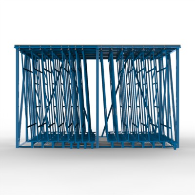 FGL Kombimodul für die platzsparende Lagerung und Kommissionierung von breiten Rahmenelementen, bestehend aus 2 Einzelrahmen als Kurzrahmen, ausgestattet mit insgesamt 15 Schubfächern