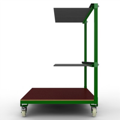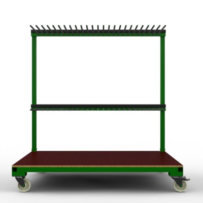 Rähmchenwagen für die Kommissionierung von Isolierglaseinfassungen mit 2 verstellbaren Kammreihen.