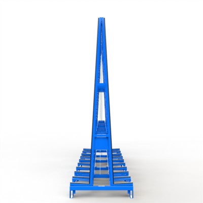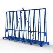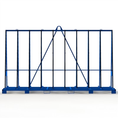 Glastransportgestell für beidseitige Beladung mit Staplerfüßen- und Staplersicherungen, Außenkranoesen, Lochraster, vorgesehen für die Befestigung von Gurtspannlatten in verzinkter Ausführung.