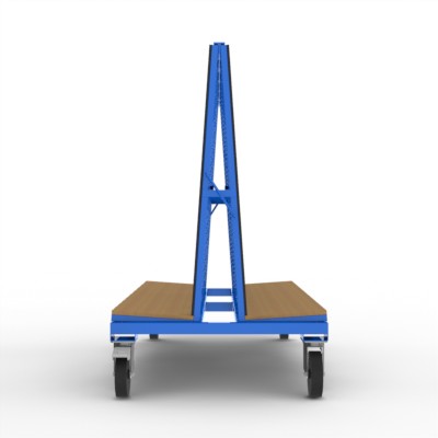 Glastransport- und Kommissionswagen für beidseitige Beladung in lackierter Ausführung mit gummierten An- und Auflagen für den internen Einsatz.