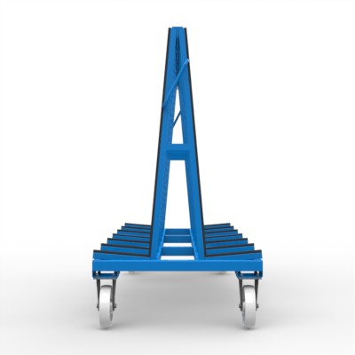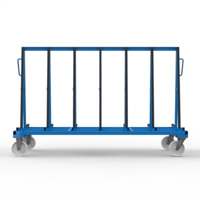 Glastransport- und Kommissionswagen für beidseitige Beladung mit gummierten An- und Auflagen.