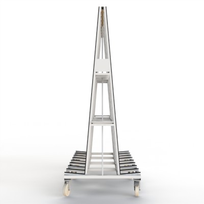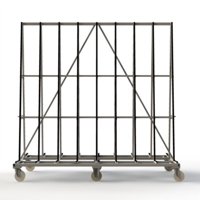 Roll-und Kommissionswagen, 3000 mm lang beidseitig beladbar bis 3250 mm. Grundrahmen vorgerüstet zur Aufnahme von Glasspannhaltern. Ausführung mit verbreitertem Oberholm.