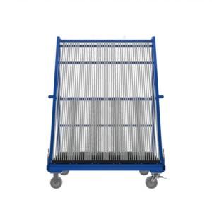 Durch einzelne Polyamidröllchen je Fach im unteren Bereich der Scheibensortier- und Fächerwagen wird gewährleistet, dass das Glas leichtgängig in die einzelnen Fächer eingeführt werden kann und nicht durch Glasstaub oder andere Ablagerungen verkratzt. Dieser fällt bei Schub- und Zugbewegung der Zuschnittgläser nach unten ab.