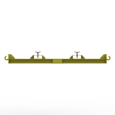 Kranbalken als Krantraverse mit niedriger Hakenaufnahme und außen fest angebrachten Karabineroesen für Rundschlingengehänge. Zur Kranung Ihrer Glaskisten und Endcaps.