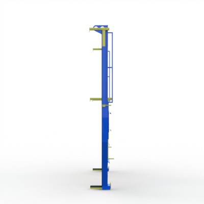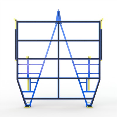 FGL Ladegabel für Glasgrößen bis 3.210 x 2.550 mit insgesamt 4 Halteklauen zum sicheren Halt der Bandmaßtafeln, 2 bzw. 4- teiligem Schutzgitter, verstellbaren unteren Aufnahmefüßen, beidseitigen Trittsprossen und 2-Punkt-Kranaufnahme.
